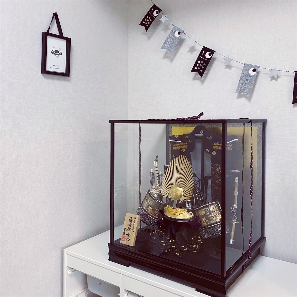 今までは兜を飾っていただけなのですが、今年はフォトフレームとガーランドを追加してみました☆